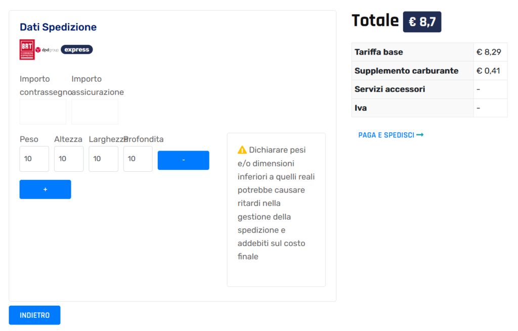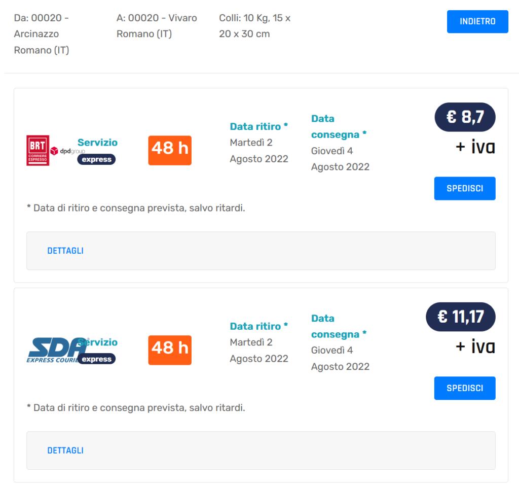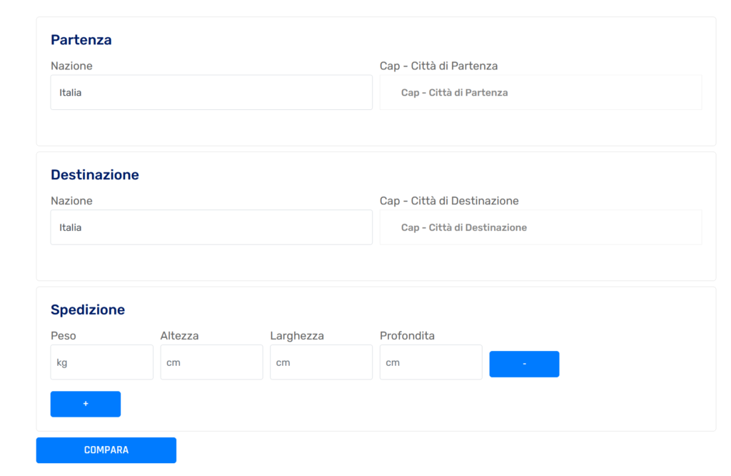 Crea la tua spedizione e confronta con i corrieri ai prezzi migliori del mercato.